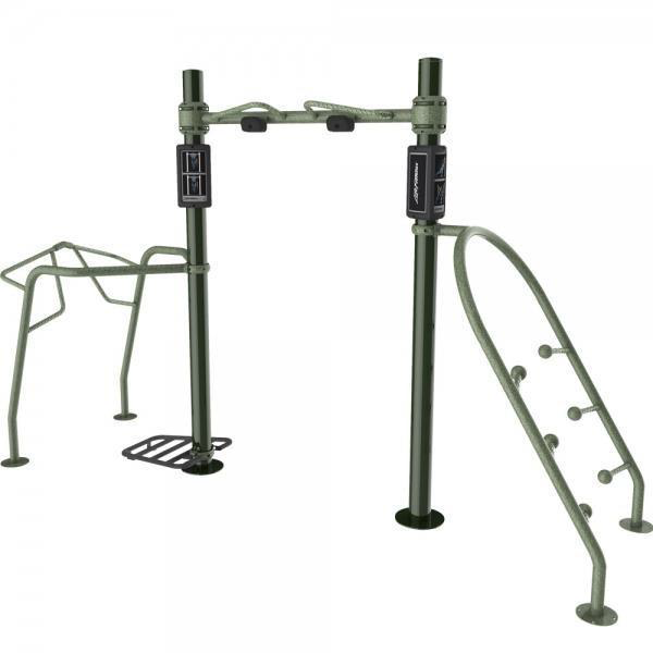 A standard outdoor calisthenics setup typically includes: